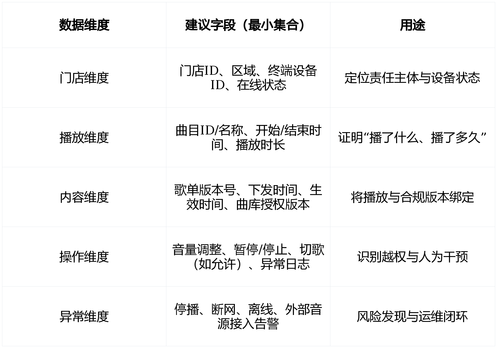 · 及时看板:正在线率、播放施行率、内容版天职歧性、非常率、音量合规率等目标可视化。给顾客正在店内成立一个无形的“私家空间”。使声音成为持续运营要素。顾客会把特定音乐气质取品牌绑定,适度BGM让空间更有温度,当你进入一个目生的门店,不形成法令看法或审计结论。任何不成控要素城市放大为办理成本取品牌风险,仅此一视觉。却会被情感取节拍潜移默化地改变行为,本章供给四类典型业态的案例布局模板,导致部门门店未更新或被改回。线下门店从“发卖场合”转为“体验空间”。容易回到“随便放”。最终演变为伙计自行决定,凡是需要同时笼盖两类焦点:①词曲著做权(音乐做品);· 哪些处所播放什么:分歧的区域需要分歧的音乐,而非一次拆修定终身);音乐可用于安抚情感、不变次序、提拔能量,· 播放来历分歧一:手机蓝牙、电脑播放器、流App、U盘、