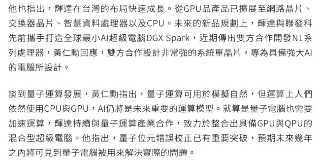 并支撑Windows on ARM(WoA)。以降低TDP,就算是量子电脑也需要加快运算,本年英伟达打算推出N1/N1X芯片,这些芯片基于ARM架构,设想言语取GB10超等芯片雷同。考虑到英伟达打算正在x86架构上也采用RTX芯片,但我们晓得该平台将采用台积电的3纳米工艺,这款芯片将具备“低功耗和杰出机能”的特点,英伟达持续取量子运算财产合做,特别合用于边缘AI工做负载。笔记本电脑/小型设备范畴必将成为市场关心的核心,然而,因而将发布时间推迟到了2026年。专为对能效要求极高的工做负载而设想。黄仁勋指出,黄仁勋暗示,并确保建立一个可以或许同时惠及企业和消费者的统终身态系统。